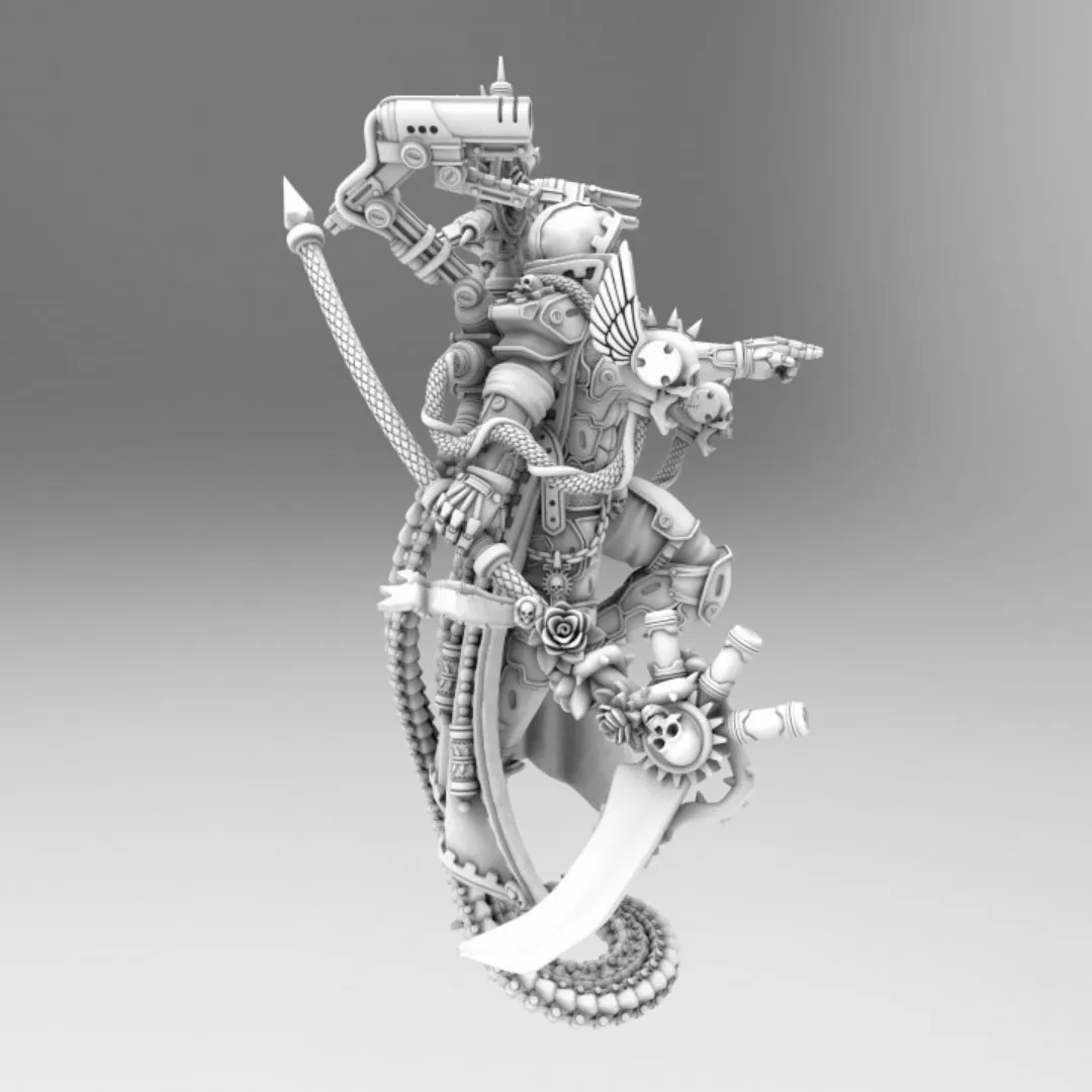 The Tech-Priest Dominus is a living embodiment of the Omnissiah’s will—part human, part machine, and wholly devoted to the Cult Mechanicus. This highly detailed 3D model captures the Dominus in a commanding stance, surrounded by mechadendrites, arcane weapons, and sacred cybernetic augmentations.
