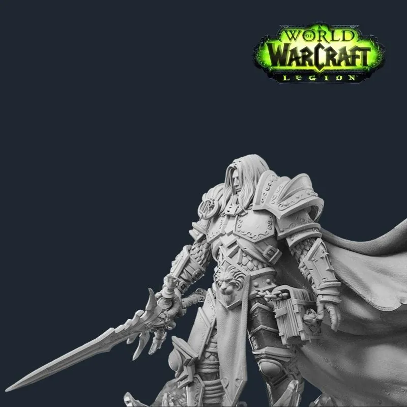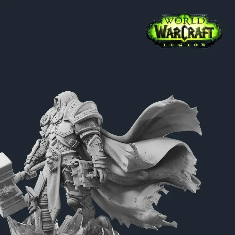Every detail—from the engraved armor plates and leather straps to the stern facial expression and long flowing hair—has been meticulously sculpted for high-resolution resin printing. Delivered as an unpainted gray 3D model, this statue is ideal for painters who want to recreate classic Alliance and Paladin color schemes or explore darker narrative transitions.