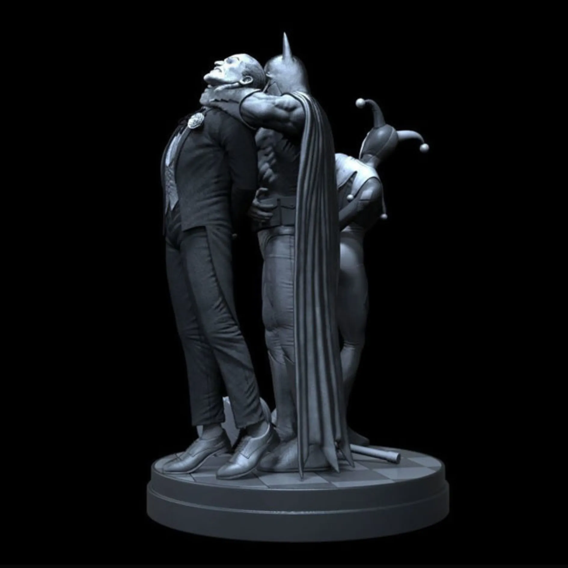 Add a dramatic moment from Gotham’s dark alleys to your collection with this Batman Interrupted 3D Model. This unique diorama features Batman caught in a tense standoff—restraining Harley Quinn while facing the sinister Penguin. Sculpted with crisp details, it captures the intensity of DC’s most iconic vigilante in action. Delivered in a gray unpainted edition, this model is perfect for painters, hobbyists, and collectors who love to customize their own figures.