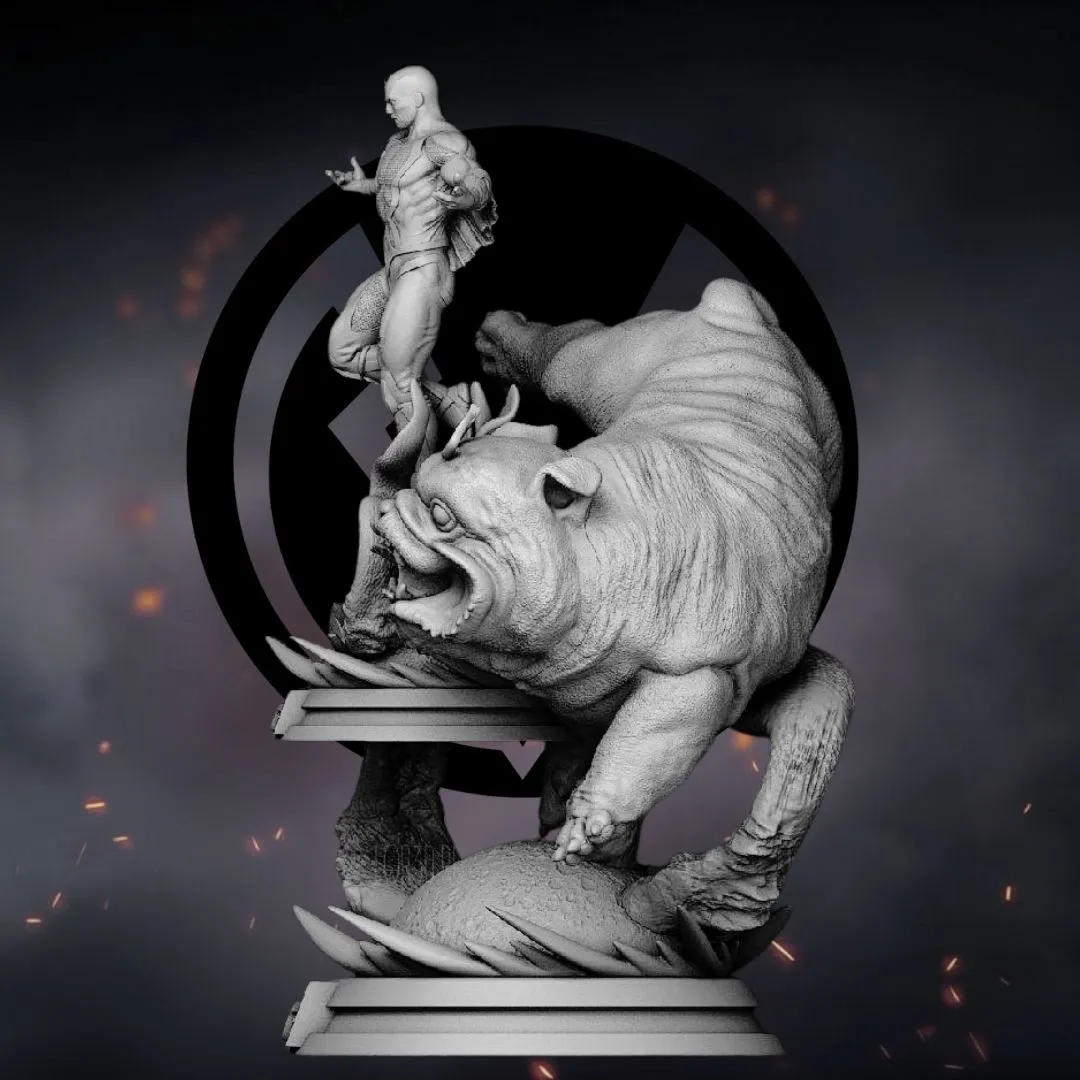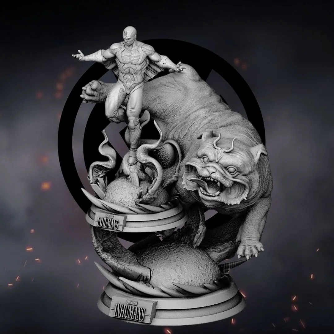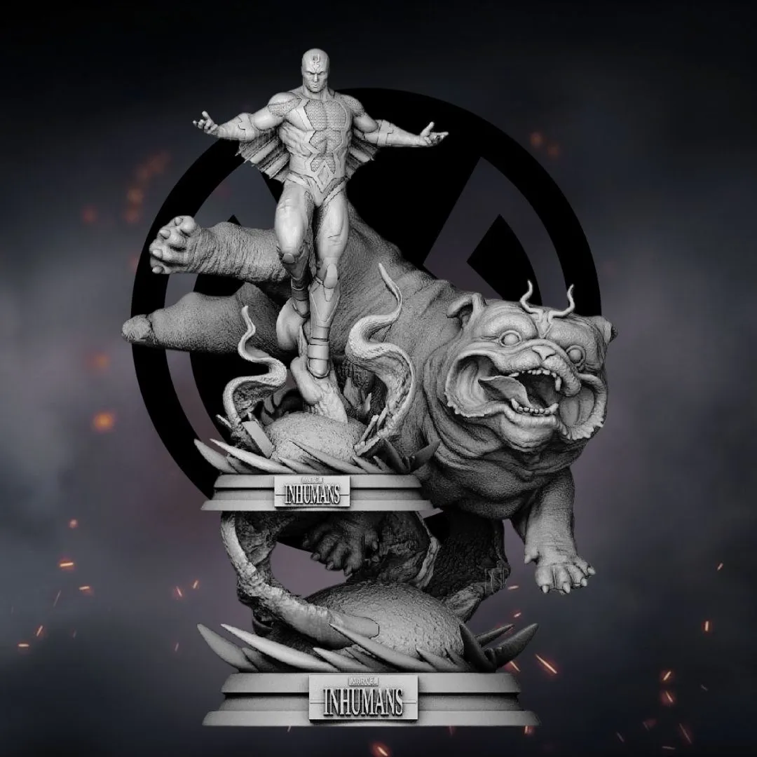 Black Bolt & Lockjaw – Marvel 3D Model (Gray Coloured Unpainted)