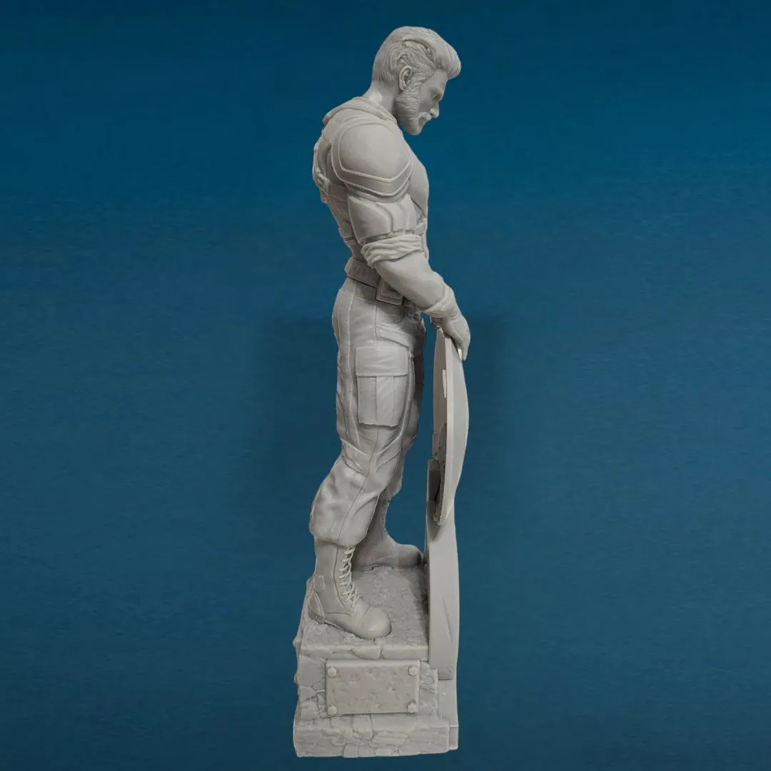 Honor the legacy of one of Marvel’s greatest heroes with this Captain America – Legend Version 3D Model, inspired by his unforgettable appearance in Avengers: Endgame. This premium sculpt captures Steve Rogers in a solemn, heroic stance—shield in hand, head bowed, standing on a rugged battle-damaged base engraved with the Avengers “A” emblem and “LEGEND” title.