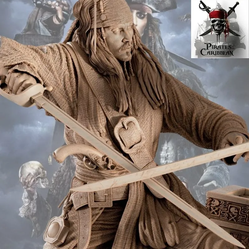 Jack Sparrow vs Hector Barbossa Duel Diorama – Pirates of the Caribbean | 3D Printable Collectible (Unpainted Gray)