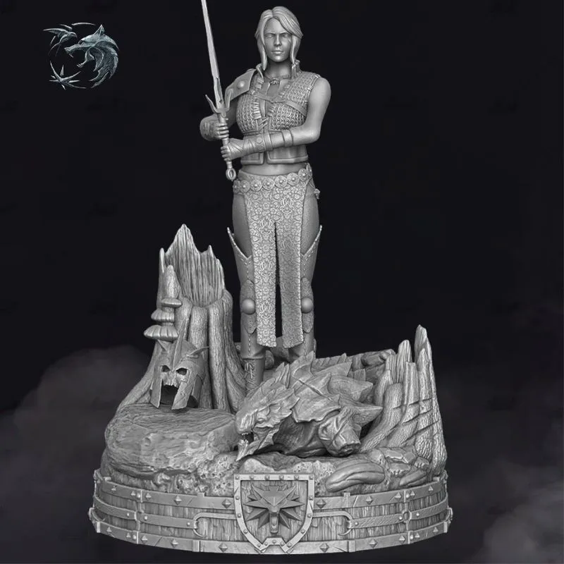 Ciri (Cirilla Fiona Elen Riannon) – The Witcher | 3D Printable Statue V2 (Unpainted Gray)