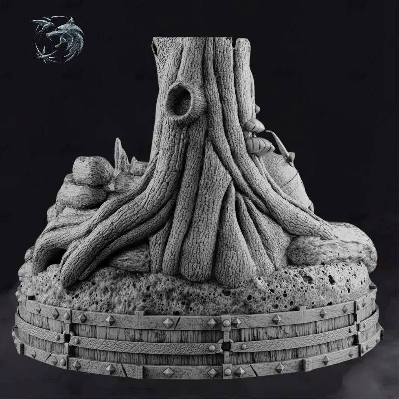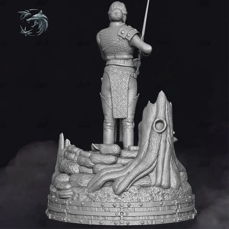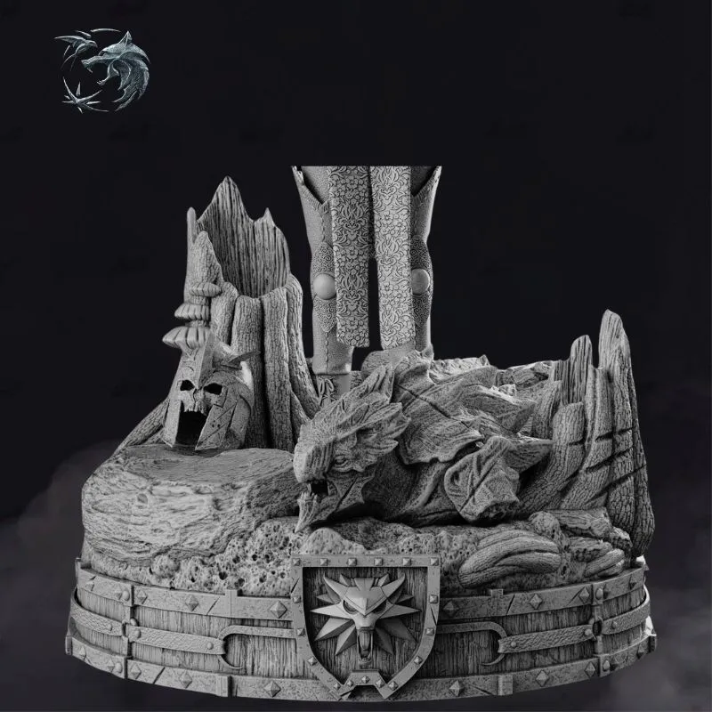 Designed as an unpainted gray 3D print model, this statue is optimized for high-detail resin printing and professional finishing. The base incorporates layered environmental elements and Witcher iconography, making it an excellent centerpiece for collectors seeking a regal, story-driven display.