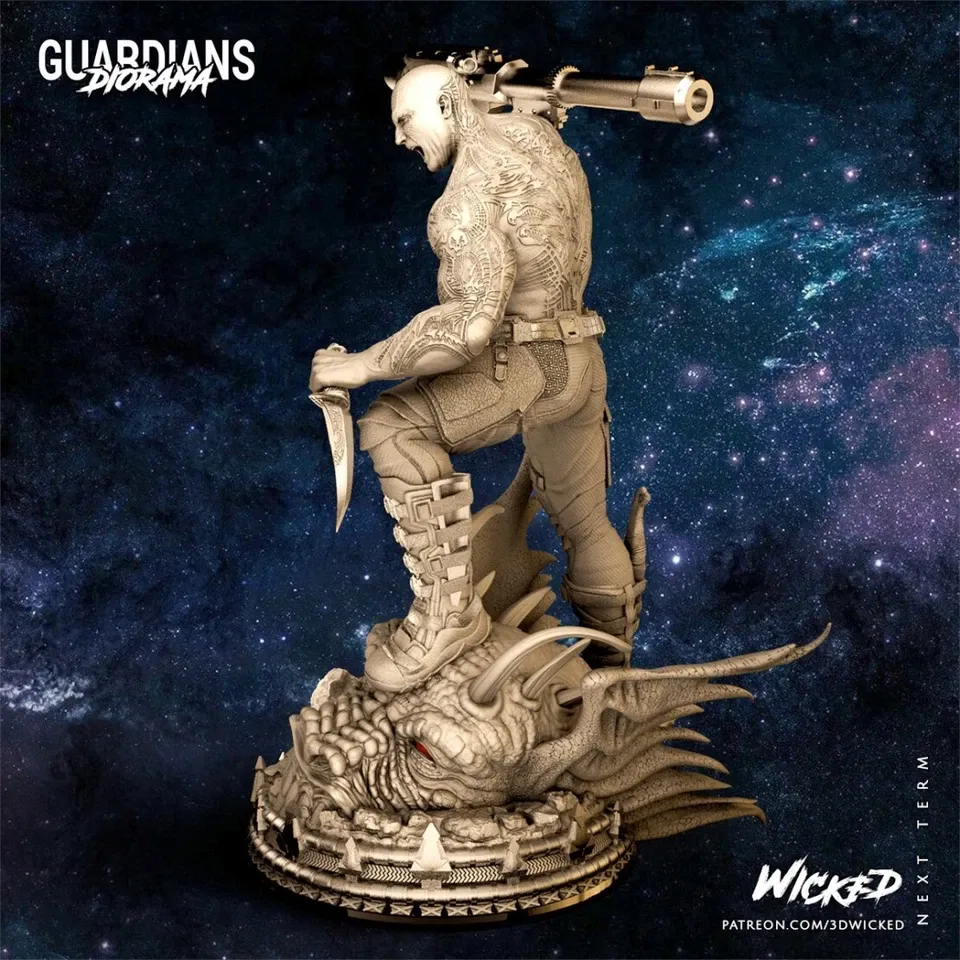 This unpainted gray resin-style 3D model allows you to customize every detail, from Drax’s iconic tattoos to the creature he’s standing on. A premium centerpiece for any Marvel display.