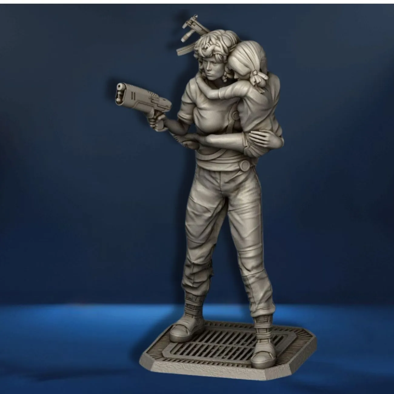 Capture one of the most emotional and unforgettable scenes in sci-fi cinema with this Alien Ripley with Kid 3D Model, inspired by Aliens (1986). This gray-coloured unpainted statue features Ellen Ripley heroically carrying Newt in her arms while armed and ready to face the horrors of the xenomorph hive. Sculpted with striking realism and dynamic posture, this model is perfect for painters, movie collectors, and fans of strong cinematic characters.