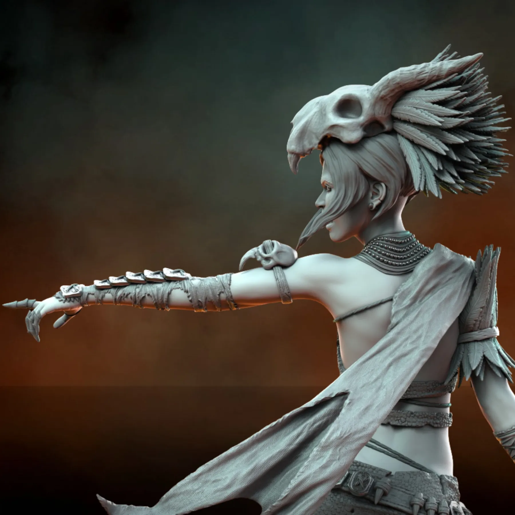 • Highly detailed sculpt featuring armor textures, bone ornaments, fabric layers, and anatomy