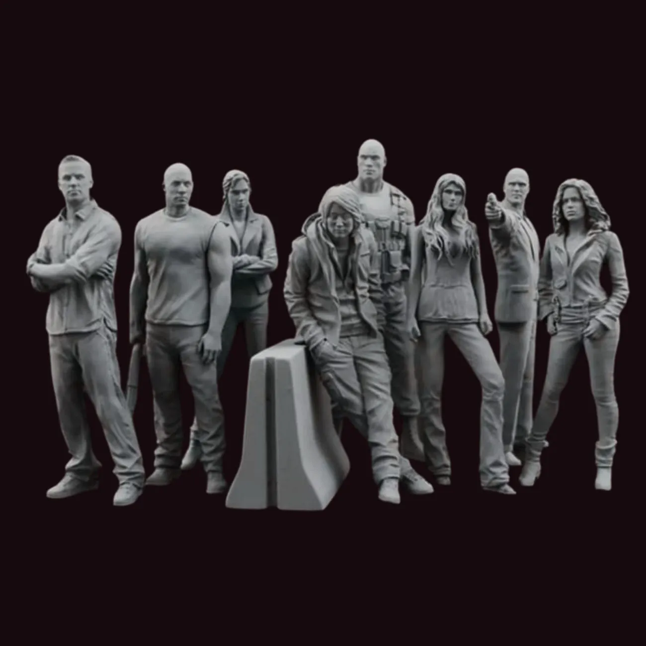 Each character is sculpted with precision: muscular anatomy, realistic clothing folds, accessories, and posture representing their signature attitude. Whether you’re a fan of high-octane action or a collector of cinematic masterpieces, this multi-character diorama delivers an impressive centerpiece for painting, display, or 3D model customization.