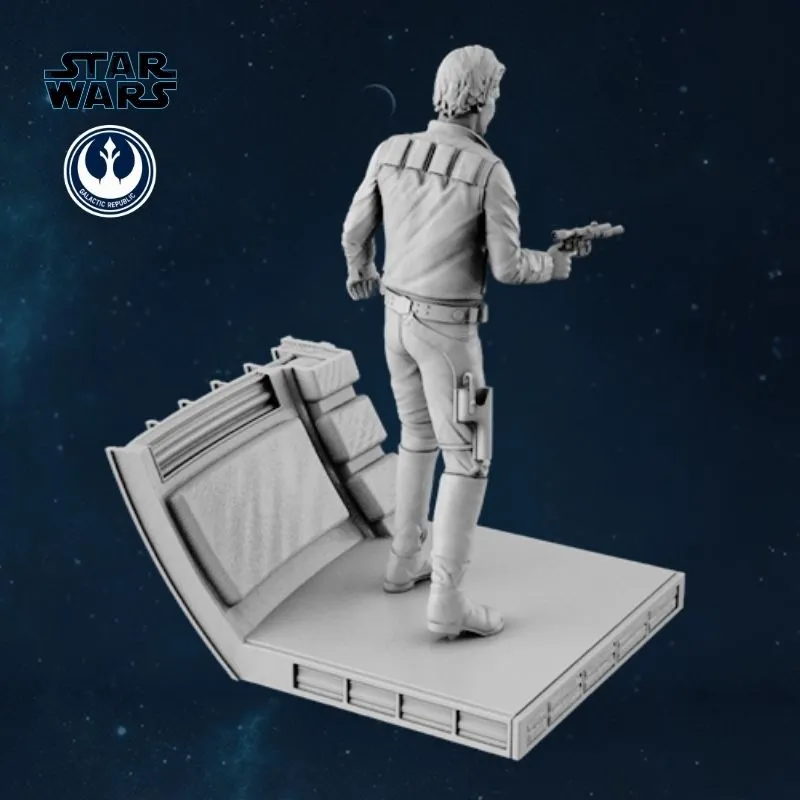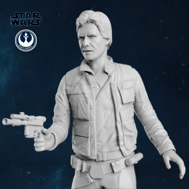 Han Solo – Smuggler of the Rebellion – Star Wars 3D Printed Character Statue | Unpainted Gray Resin