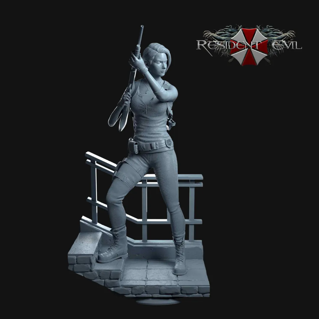 Bring survival horror to life with this Jill Valentine 3D Model, inspired by her iconic look from Resident Evil. Standing poised with her sidearm and ready for action, Jill is captured in an intense battle stance on a detailed stairway diorama base. Perfectly sculpted in gray unpainted resin, this collectible is designed for painters and fans who want to customize their own version of the legendary S.T.A.R.S. operative.