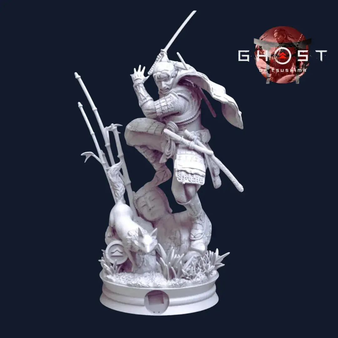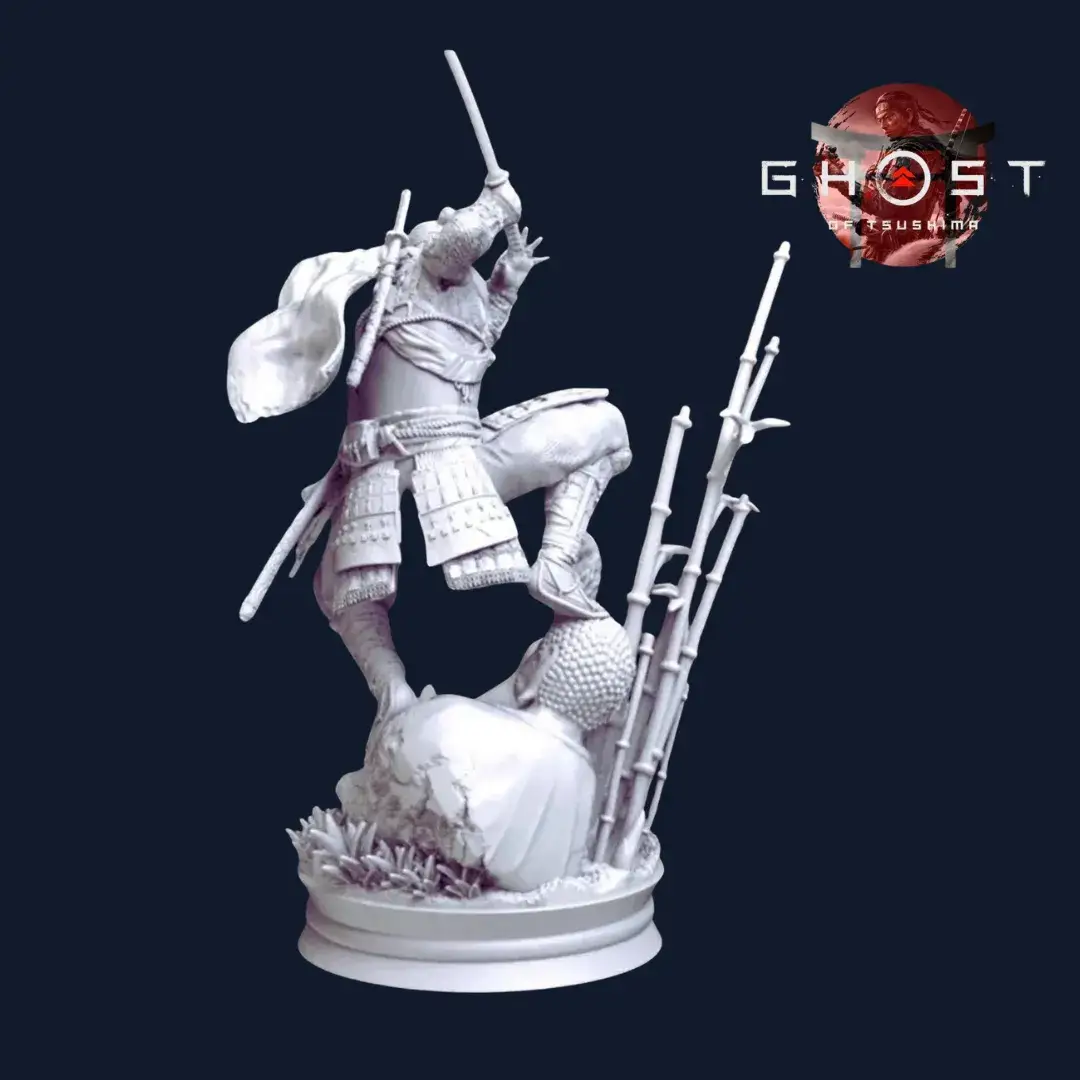 Jin Sakai Statue – Ghost of Tsushima 3D Model (Unpainted Gray Edition)