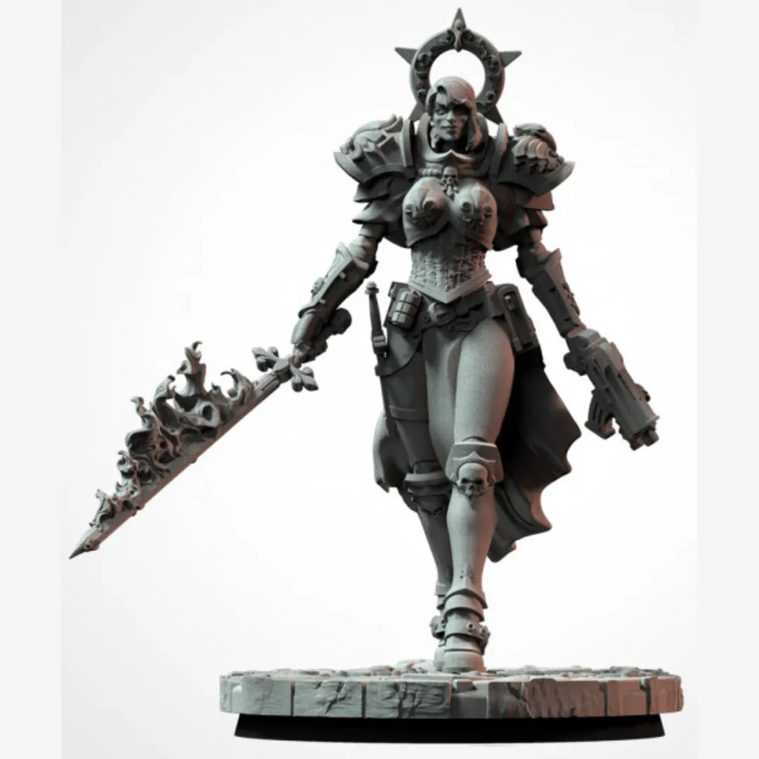 Justine – Zealous Warrior of Faith – 40K Warhammer | Unpainted Gray Resin 3D Model
