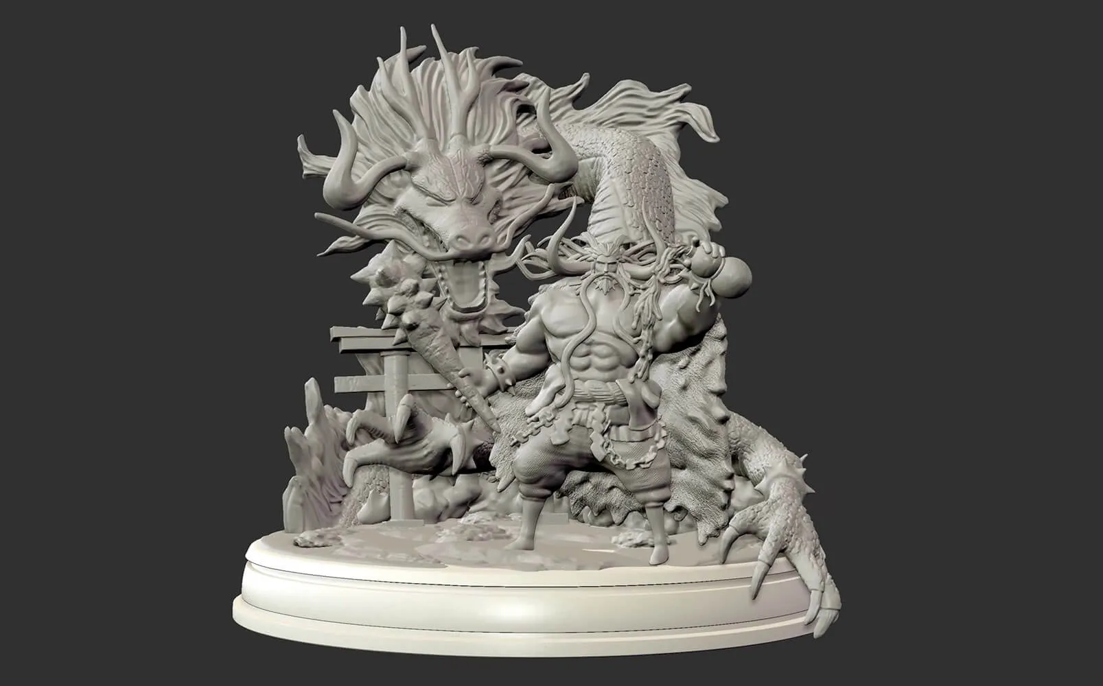 • Pose: Dominant battle stance with club weapon (kanabo)