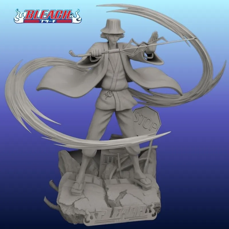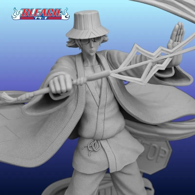 🌀 Kisuke Urahara 3D Model – Bleach Anime (Gray Unpainted Edition)