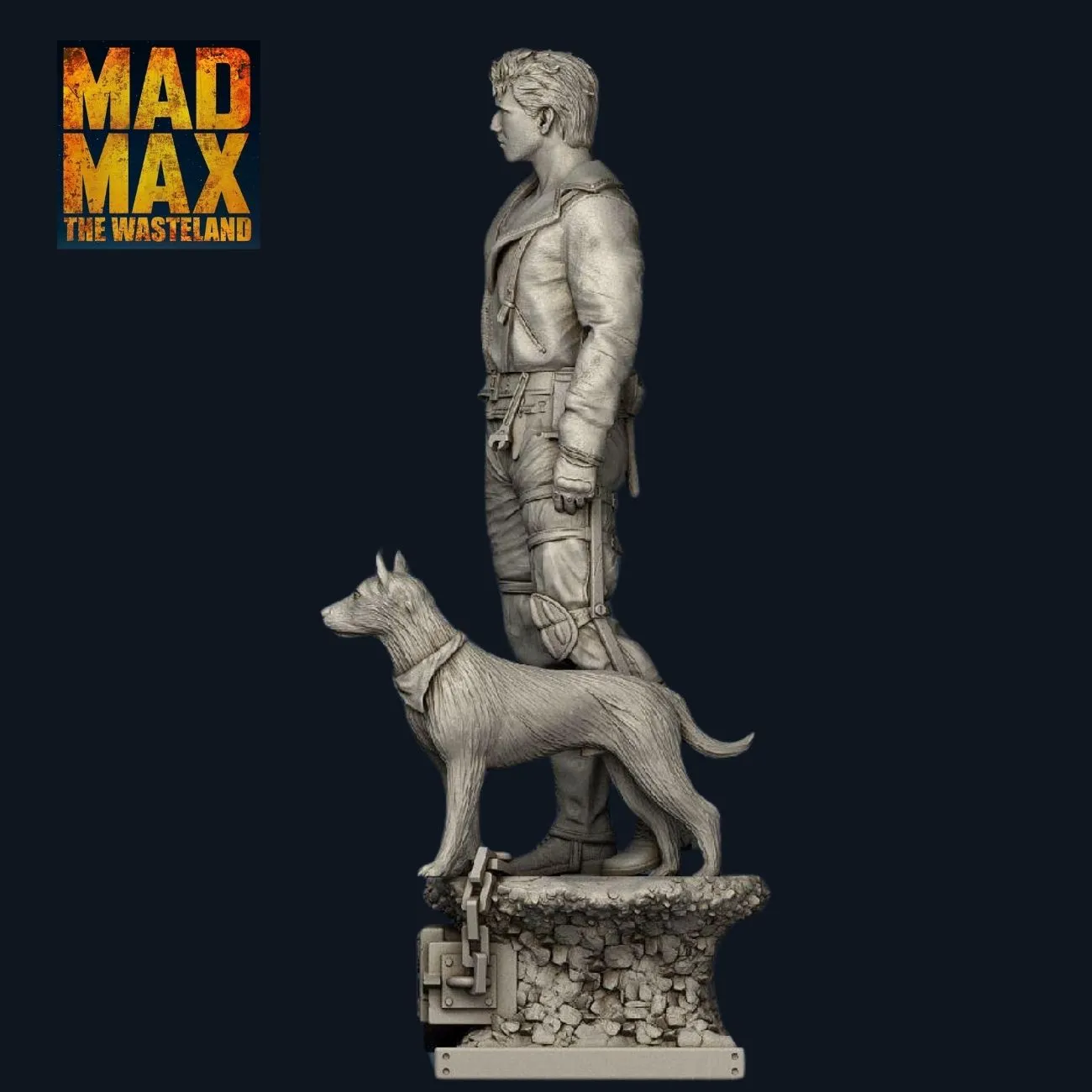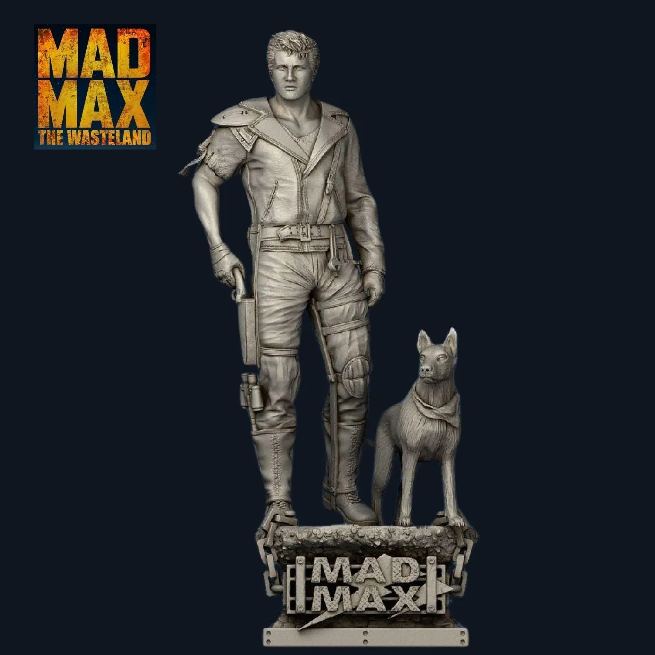 Standing confidently alongside his loyal dog, the model showcases battle-worn textures, realistic clothing folds, and an expressive facial sculpt that mirrors Max’s gritty determination. Delivered unpainted in gray, this model offers painters and collectors complete creative control to add weathering, dust effects, and desert-worn tones.