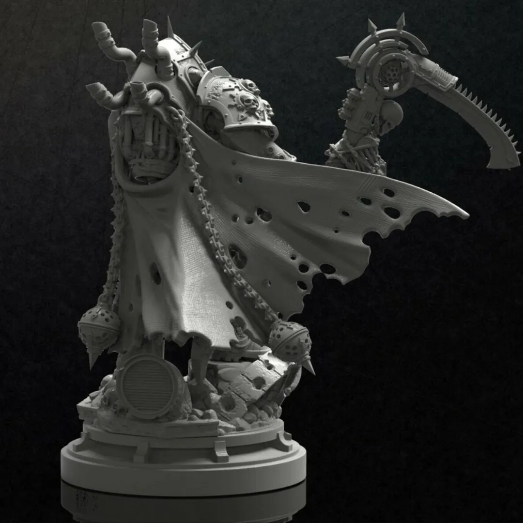 The Death Lord Mortarion, Primarch of the Death Guard, stands as a grim symbol of decay, endurance, and inevitable death. This highly detailed 3D model captures Mortarion in a powerful, intimidating stance—armored in corrupted plate, draped in tattered cloaks, and wielding his iconic manreaper scythe, surrounded by skulls, chains, and the unmistakable marks of Nurgle’s influence.