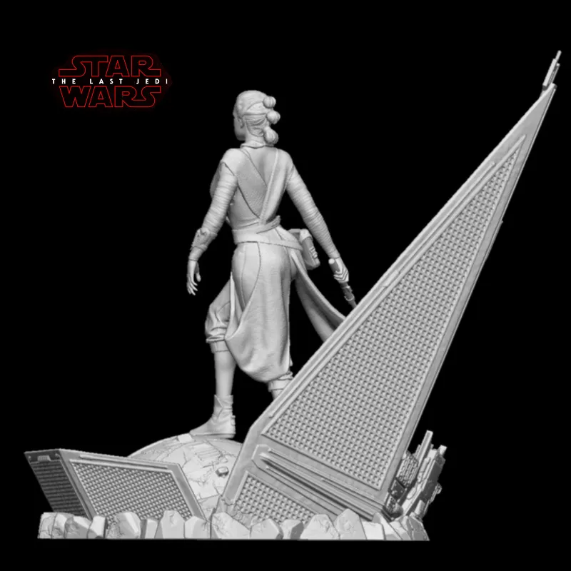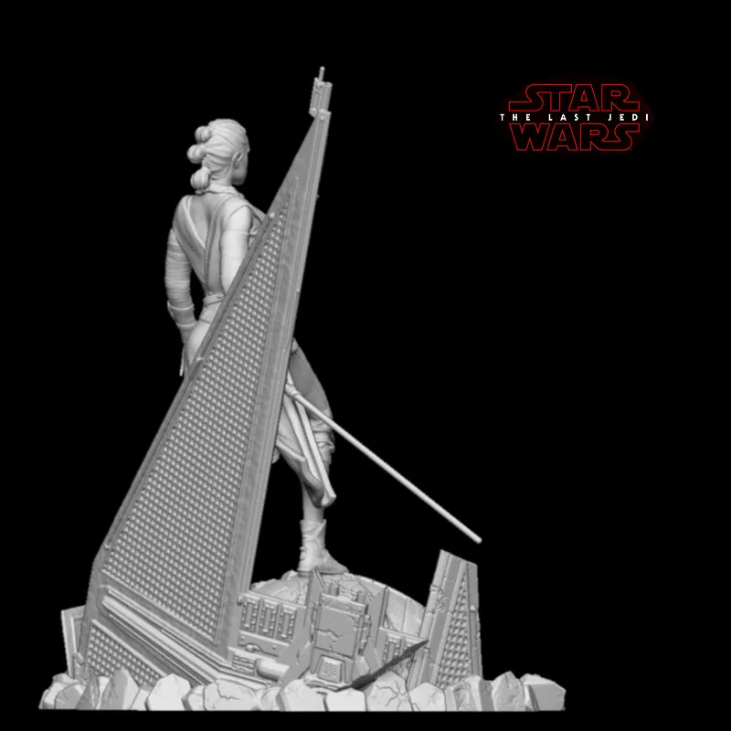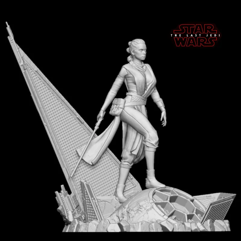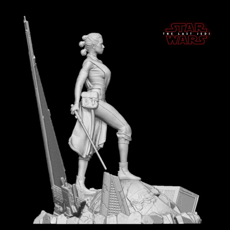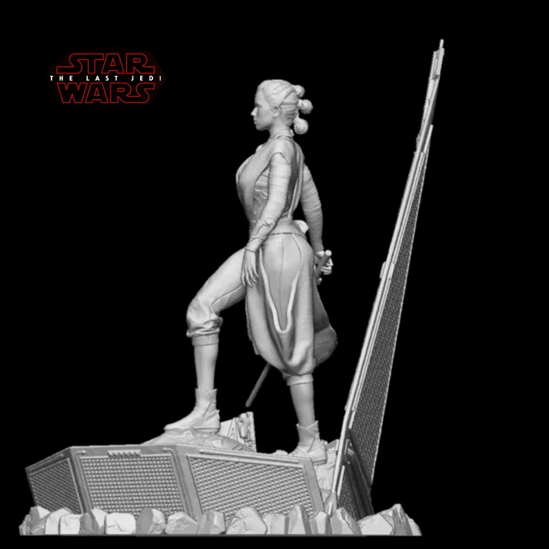 Rey (Scavenger / Rogue) – Star Wars – 3D Printed Collectible Statue | Unpainted Gray Resin