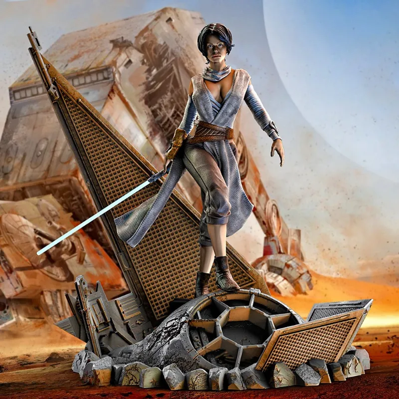 • Iconic Star Wars Heroine – Rey in a dynamic scavenger/rogue pose