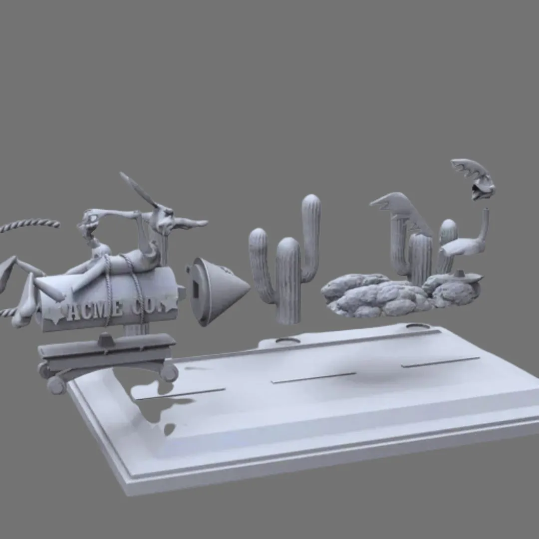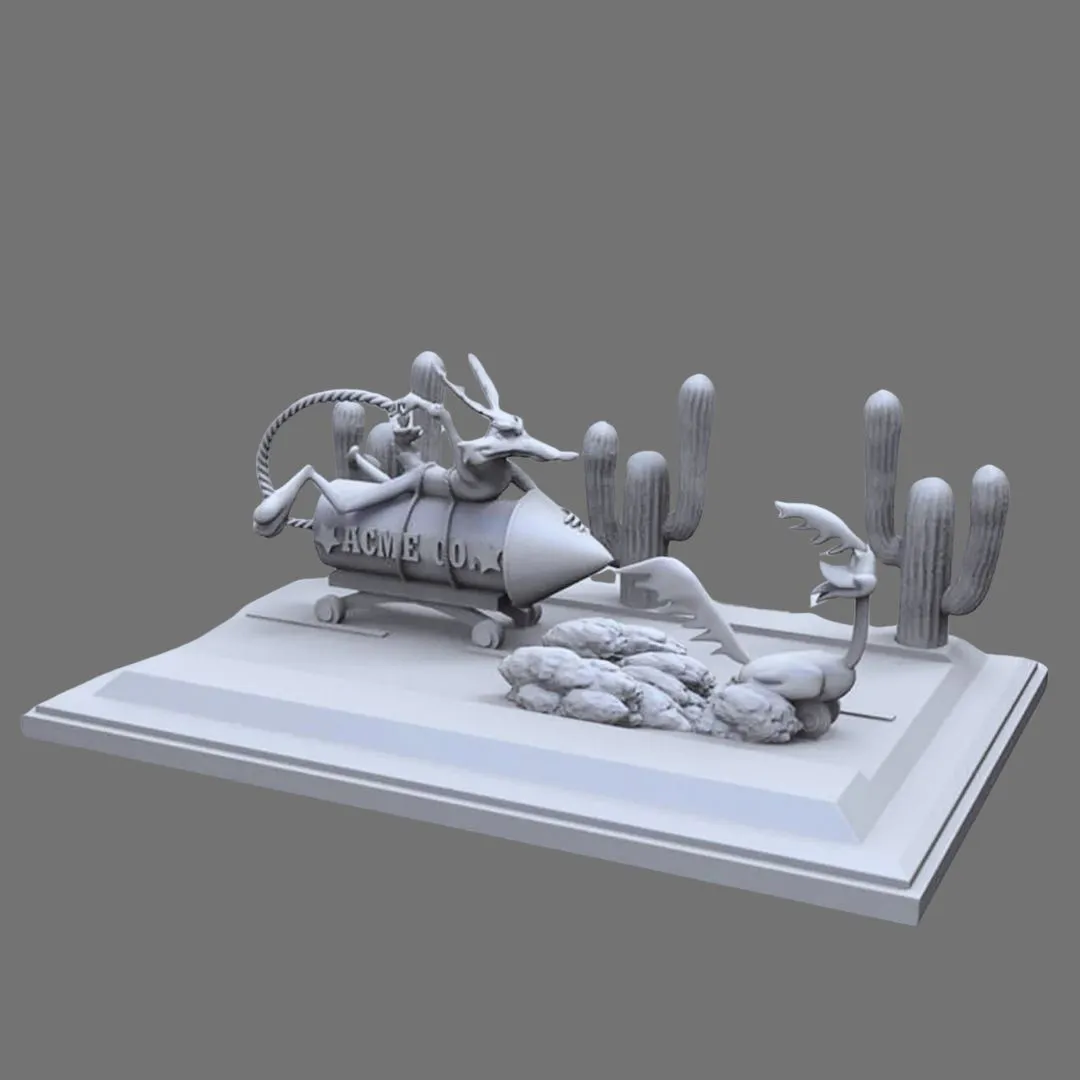 Beep Beep! Relive the most legendary chase in cartoon history with this Road Runner & Wile E. Coyote 3D Model. Captured in a dynamic diorama, this unpainted gray edition showcases the Road Runner in full speed and Wile E. Coyote in his determined pursuit. Perfectly sculpted with crisp details, this model is ideal for collectors, painters, and hobbyists who love to customize their own figures. Whether painted or displayed as-is, it’s a must-have centerpiece for fans of Looney Tunes.