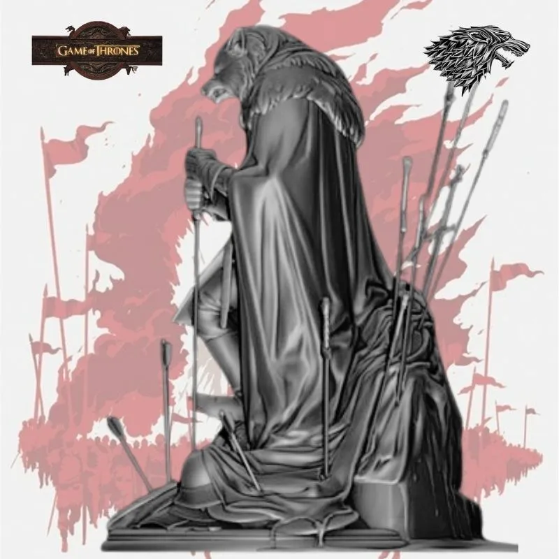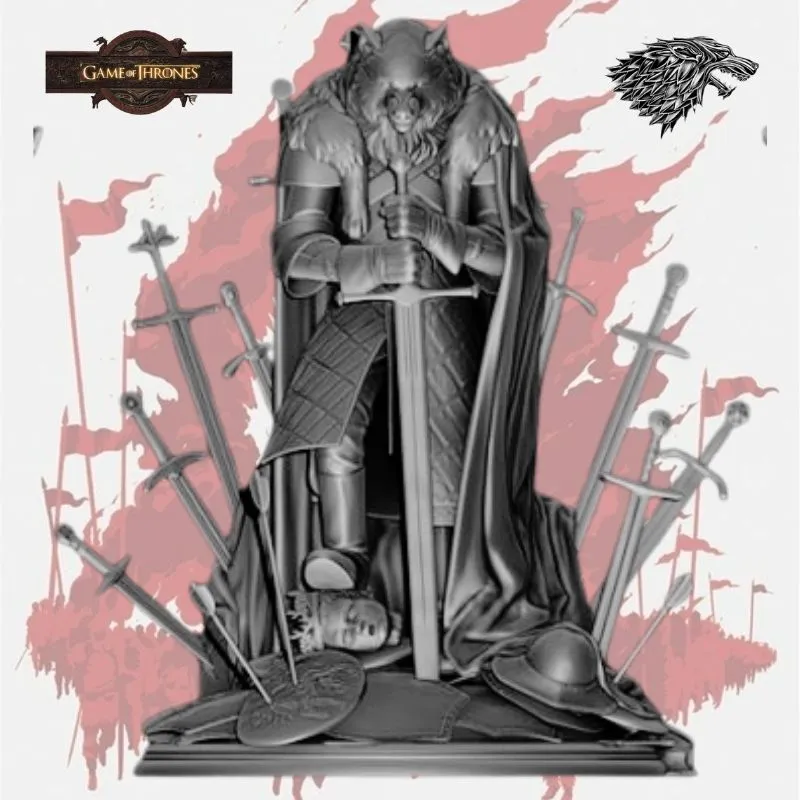 Honor the legacy of the Young Wolf with this masterfully sculpted Robb Stark – House Stark 3D Model, inspired by Game of Thrones. Standing in a commanding pose with a direwolf-themed helm and surrounded by fallen swords, this statue embodies loyalty, strength, and the unbreakable spirit of the North.