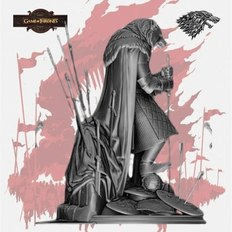 Rendered in unpainted gray resin, the model emphasizes every detail—from the plated Stark armor to the fur-lined cloak—offering the perfect base for painters and collectors to bring the King in the North to life.