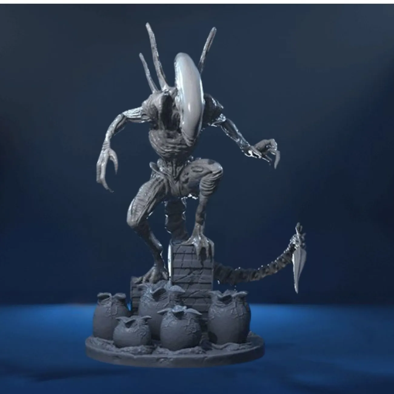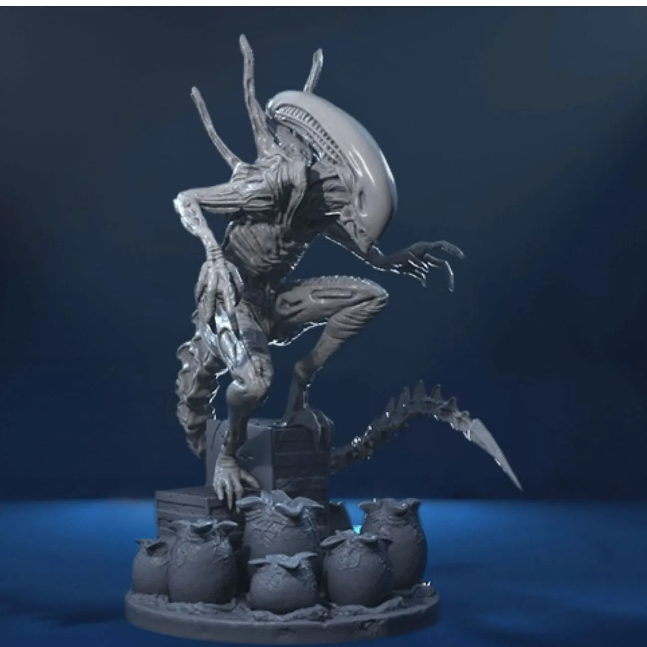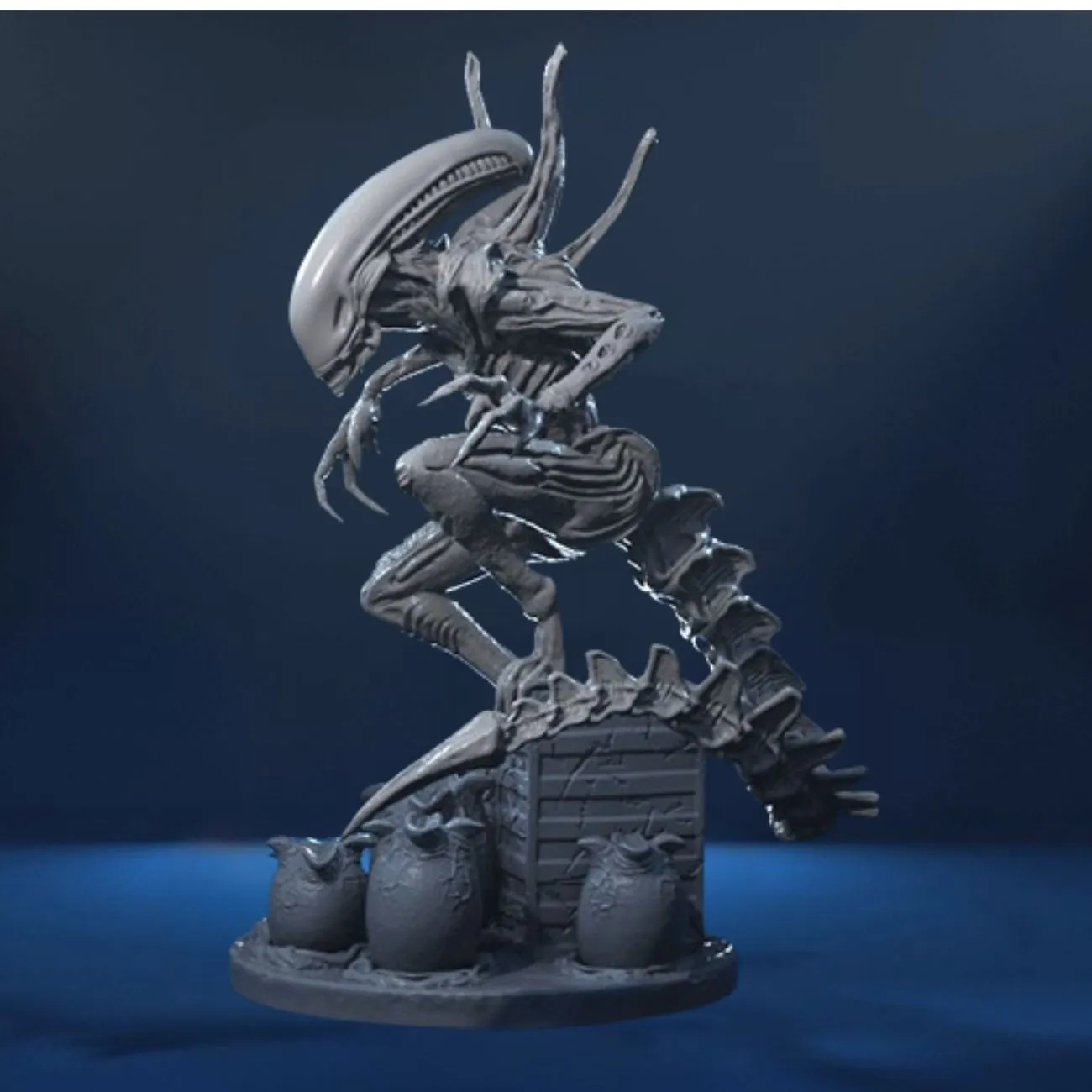 Experience the terror of the Xenomorph hive with this Alien Mother 3D Model, a chilling and highly detailed representation inspired by the iconic Alien movie universe. This gray-coloured unpainted diorama statue captures a Xenomorph Mother poised above a nest of hatching eggs, showcasing the creature’s biomechanical anatomy, predatory posture, and atmospheric hive environment. Perfect for sci-fi collectors, painters, and fans of deep-space horror.